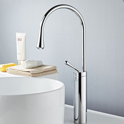 Monocomando para bacha sobre mesada, con pico movil giratorio a 360 grados.